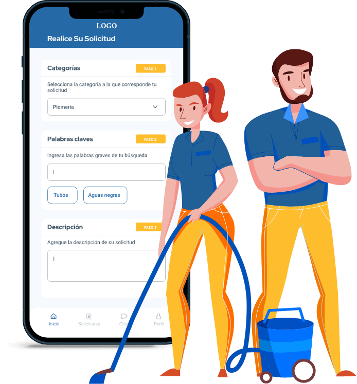 Al ingresar a la App, verás un formulario para crear tu solicitud de servicio, complétalo y empieza a recibir respuestas.
